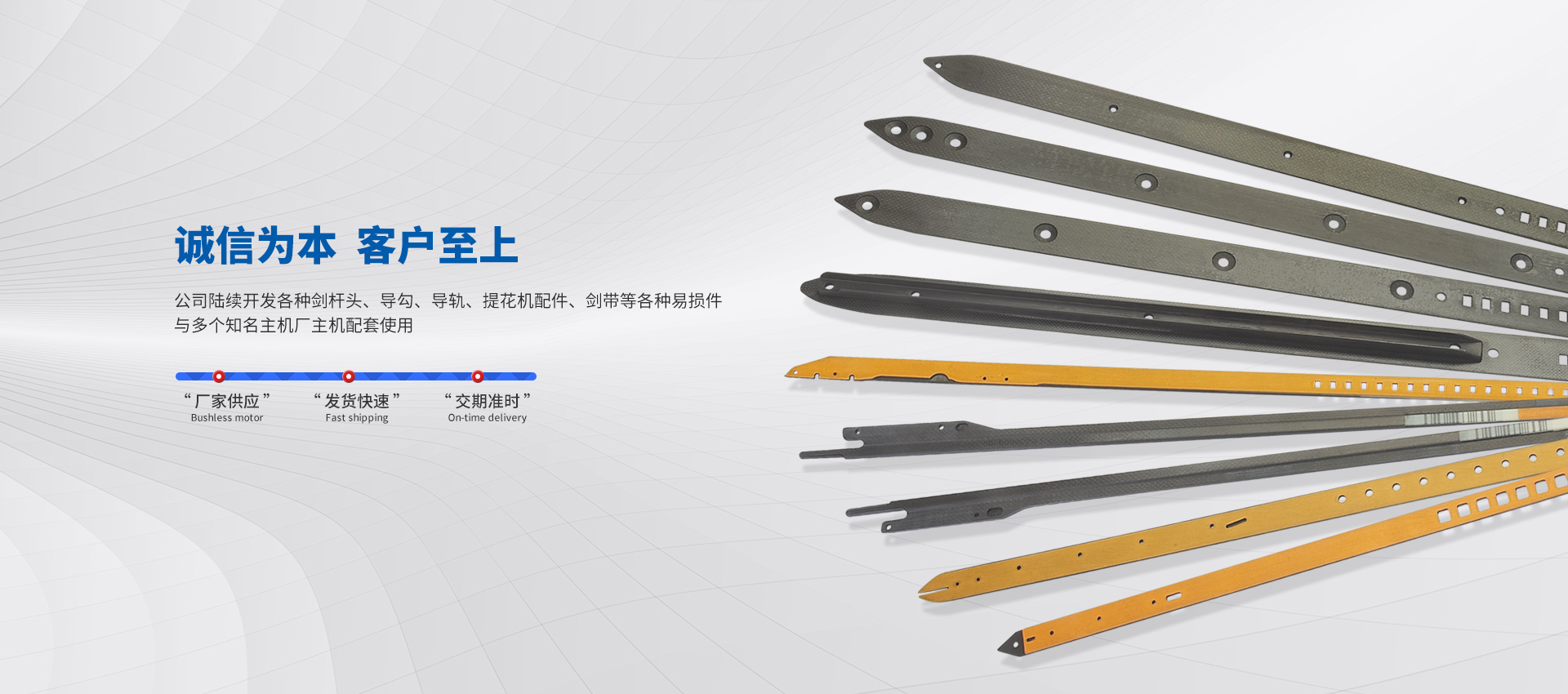 浙江巨劍紡織機(jī)械有限公司,是一家專(zhuān)業(yè)研制、開(kāi)發(fā)和生產(chǎn)進(jìn)口及國(guó)內(nèi)劍桿織機(jī)配件的生產(chǎn)型企業(yè)。自2002年開(kāi)始, 公司陸續(xù)開(kāi)發(fā)各種劍桿頭、導(dǎo)勾、導(dǎo)軌、提花機(jī)配件、劍帶等各種易損件, 并獲得多項(xiàng)國(guó)家專(zhuān)利。巨劍擁有大量?jī)?yōu)秀的專(zhuān)業(yè)技術(shù)人才和研發(fā)團(tuán)隊(duì)、管理團(tuán)隊(duì)···